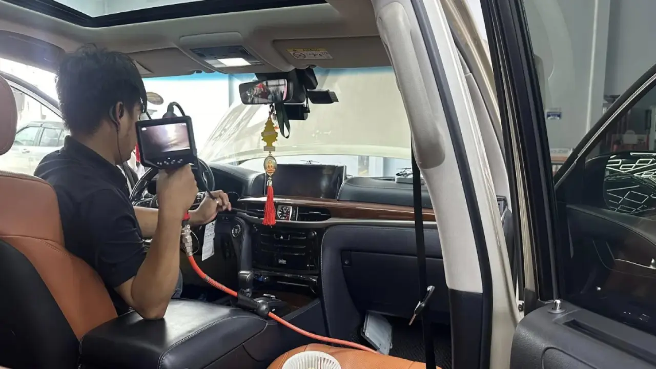 Darling Car Wash Center: Digital Air Conditioner Cleaning Service 4-Stage Digital Cleaning Process Our professional cleaning service ensures your car's air conditioner is fresh and functioning efficiently with the following steps: Stage 1: Clean the dust and debris on the air conditioner casing. Stage 2: Apply an antibacterial and antifungal agent that eliminates all musty odors when the air conditioner is turned on. Stage 3: Remove dead insects, such as cockroaches, rats, and mosquitoes, from the system. Stage 4: Add a refreshing scent that activates when you turn on your car's air conditioning. Guaranteed Quality and Price We offer the best cleaning service with quality assurance at competitive prices. Darling Car Wash Center Hours Monday to Sunday: 07:00 AM - 07:00 PM For more details, please visit or contact the center directly.